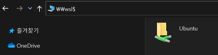 주소창에 \\wsl$ 의 값을 넣으면 네트워크 환경으로 접속이 가능합니다.