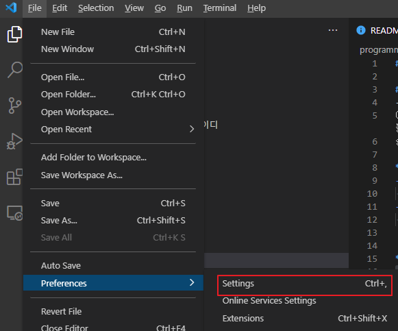 비쥬얼 스튜디오 코드 프로그램에서 들여쓰기의 공백을 표시하는 방법은 간단합니다.
