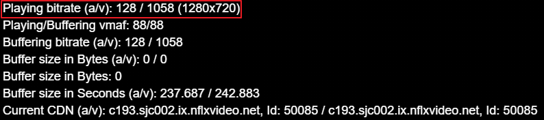 해당 캡쳐는 크롬에서 찍은 캡쳐입니다. 각 브라우저마다 넷플릭스 동영상 재생 시 지원하는 화질 값이 정해져 있기 때문에 이왕이면 고화질로 보는 것이 좋겠죠.
