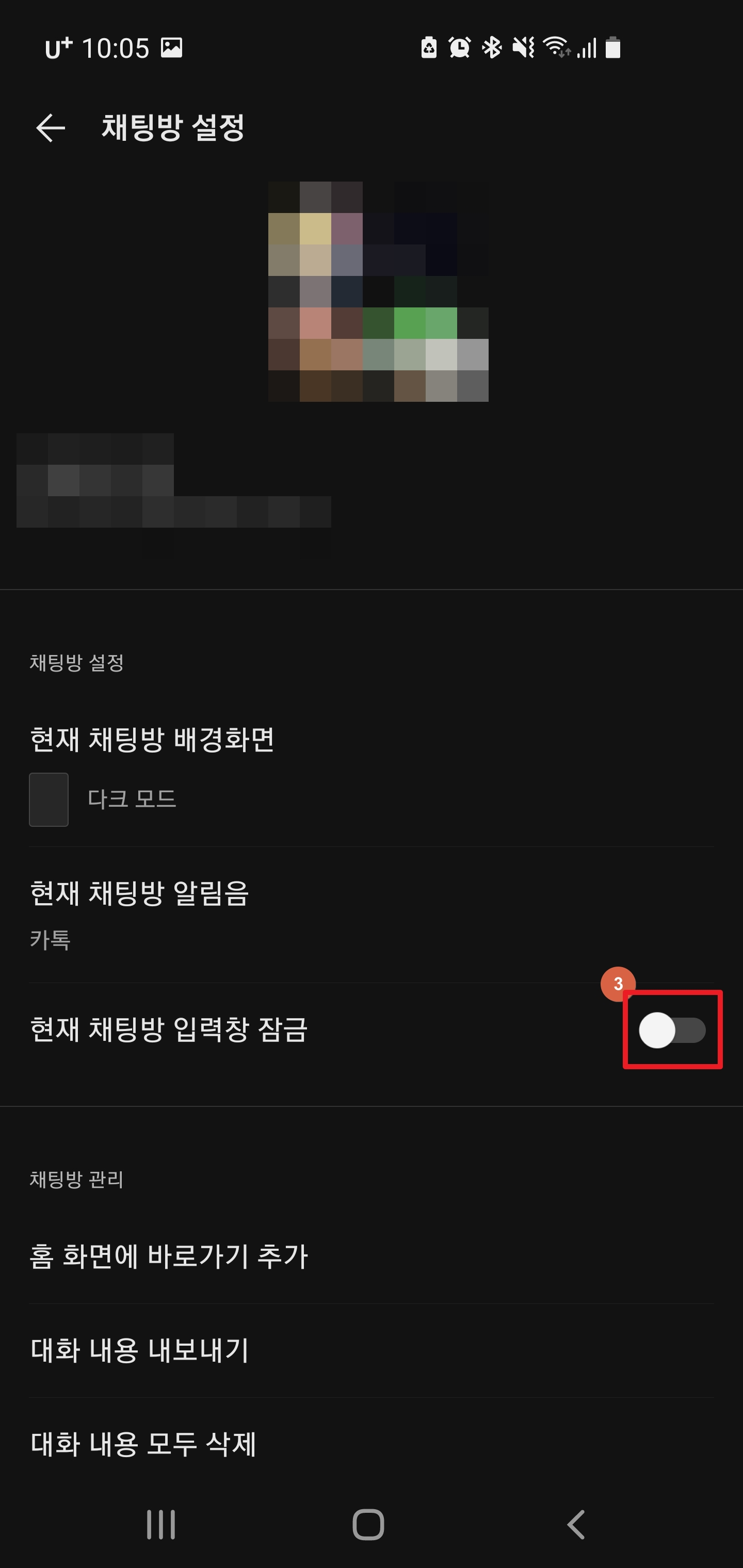3. 채팅방설정에서 현재 채팅방 입력창 잠금을 설정한다.