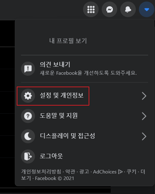 1. 먼저 로그인 후 우측 상단의 아래 화살표 버튼을 클릭합니다.