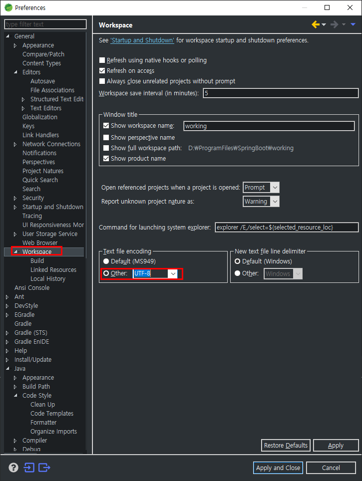 이클립스는 처음에 셋팅을 조금 해놓아야 추후 작업이 편할 수 있습니다.