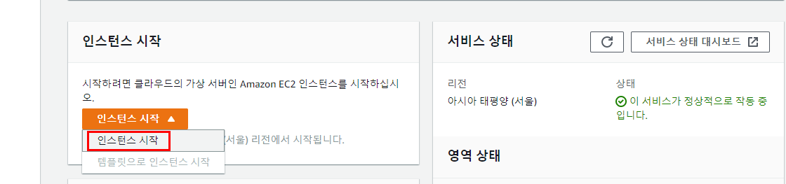 그 후 중간에 인스턴스 시작 버튼을 누릅니다.