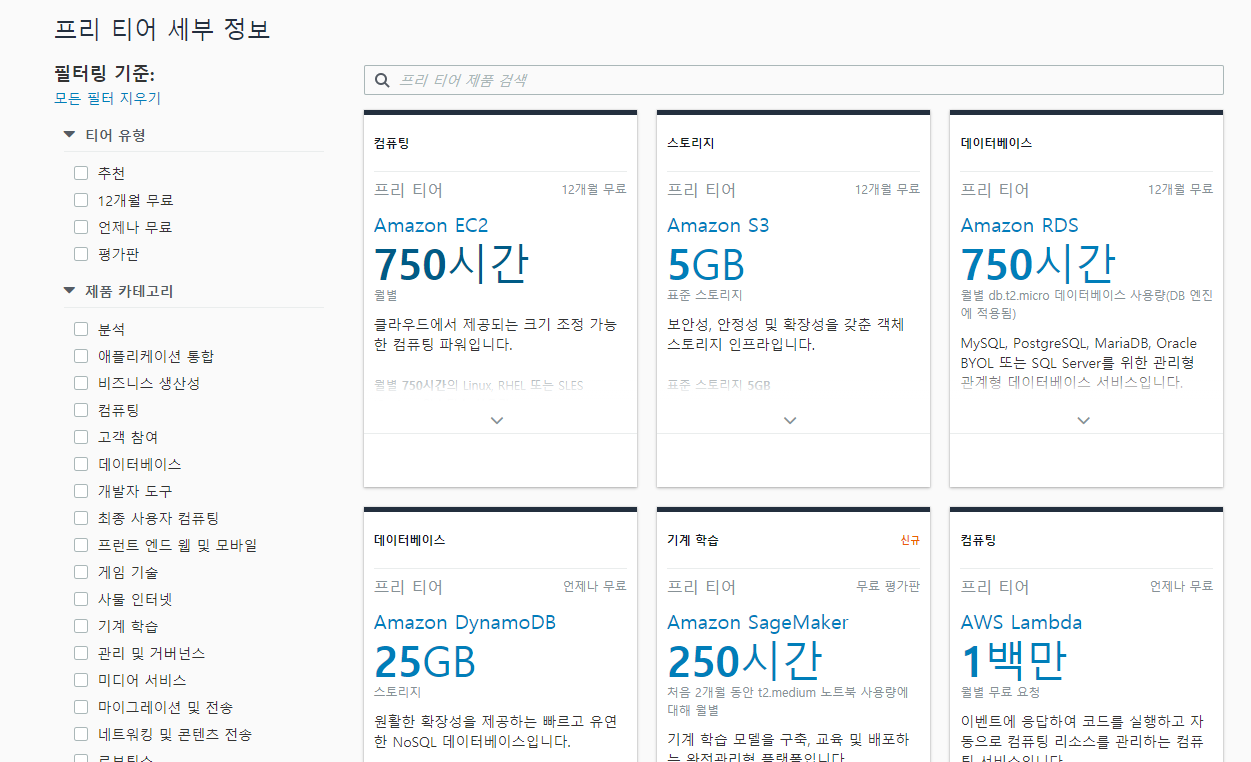 AWS에서는 기본적으로 가입 후 1년 동안 프리티어를 제공합니다.
