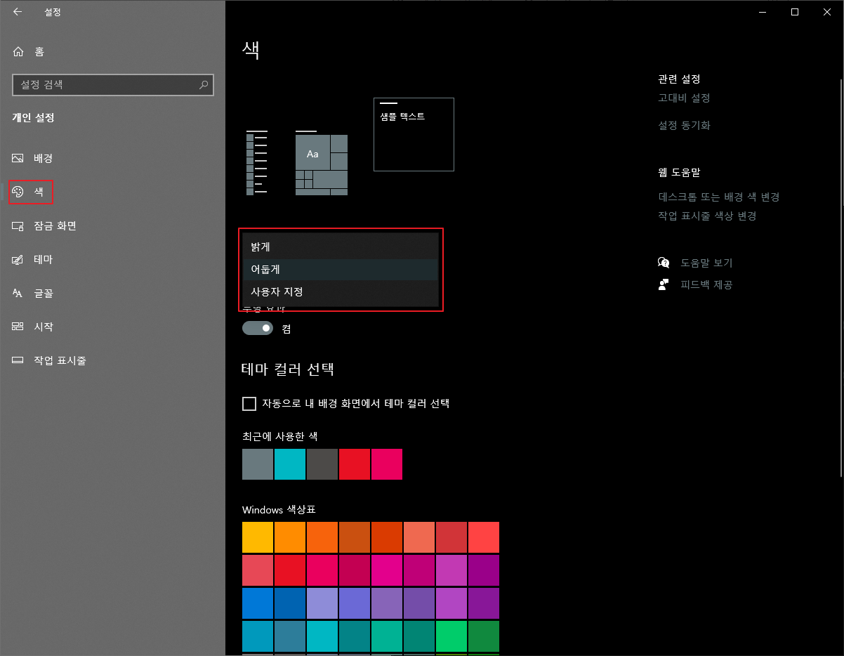 그런 뒤 좌측의 색을 클릭하고 가운데에 있는 콤보박스에서 설정을 바꾸시면 적용됩니다.